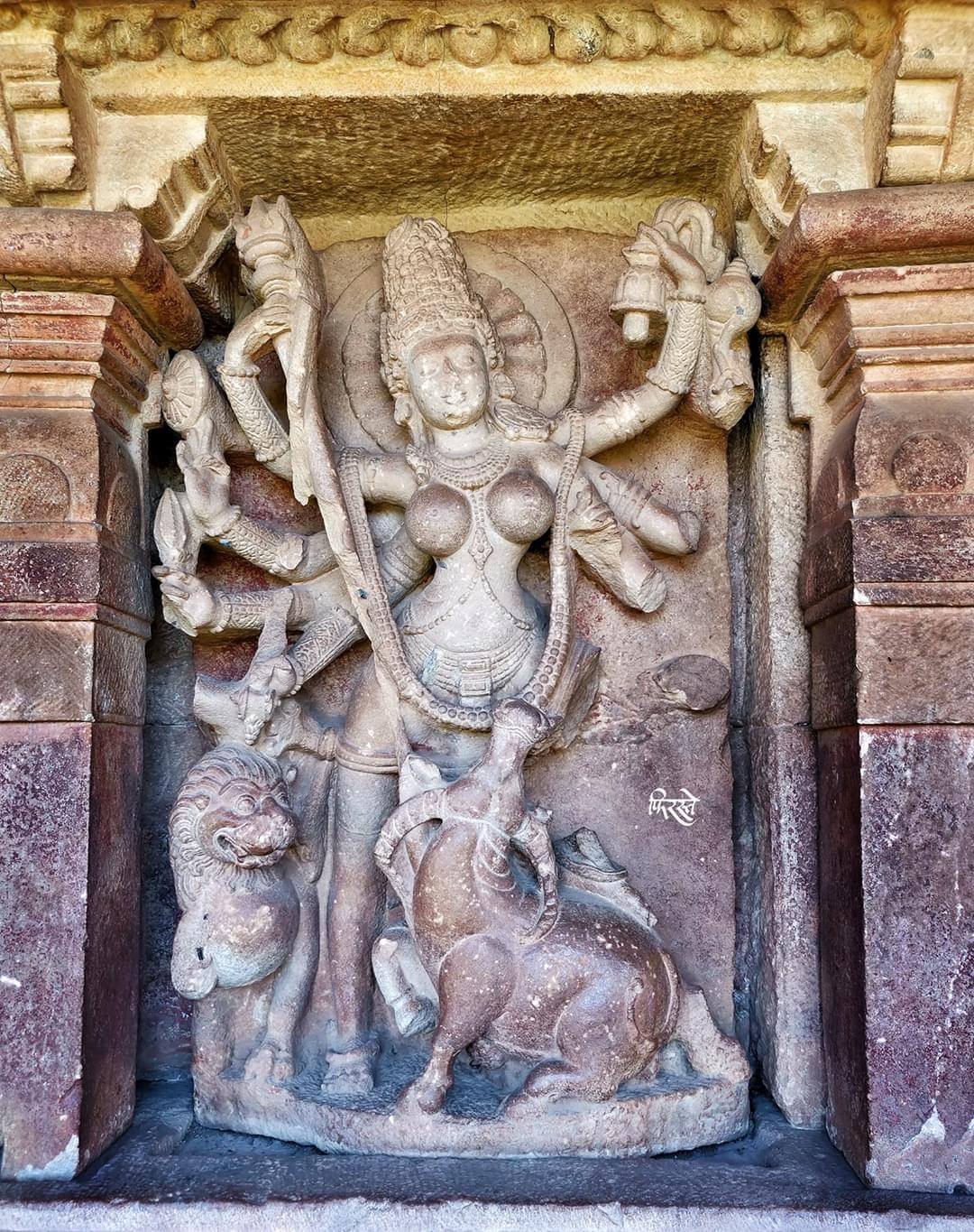 मंदिराच्या दक्षिण दिशेस असणाऱ्या भिंतीवर महिषासुरमर्दिनीचे शिल्प आहे.पाच फुटी,आठ हातांच्या महिषमर्दिनीने गेली कित्येक दशके अभ्यासकांना वेड लावले आहे.